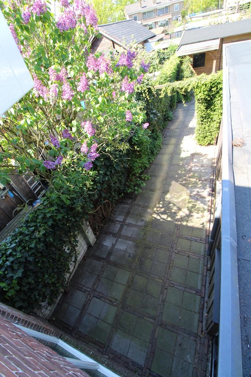 De woning beschikt over een zonnige achtertuin op het noordwesten, een achterom en een ruime berging.