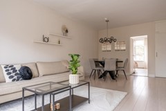 De lichte en ruime woonkamer vormt het hart van de woning en biedt volop plek om een gezellige zithoek en eethoek te creëren. Dankzij de grote raampartijen geniet je hier van veel natuurlijk licht. Vanuit de woonkamer heb je toegang tot een zonnig balkon op het westen, waar je heerlijk kunt ontspannen en kunt genieten van de middag- en avondzon.