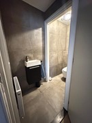 Aan de rechterzijde van de woonkamer zit een kelderkast en naast de kelderkast zit een klein portaaltje met aansluitend het toilet.