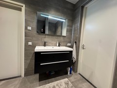 Naast de keuken een de rechterzijde zit de badkamer. Deze is heerlijk ruim opgezet en voorzien van een inloopdouche, dubbele wastafel met meubel, handdoekradiator en een aansluiting voor de wasmachine. Vanuit de badkamer is er tevens toegang tot één van de slaapkamers.