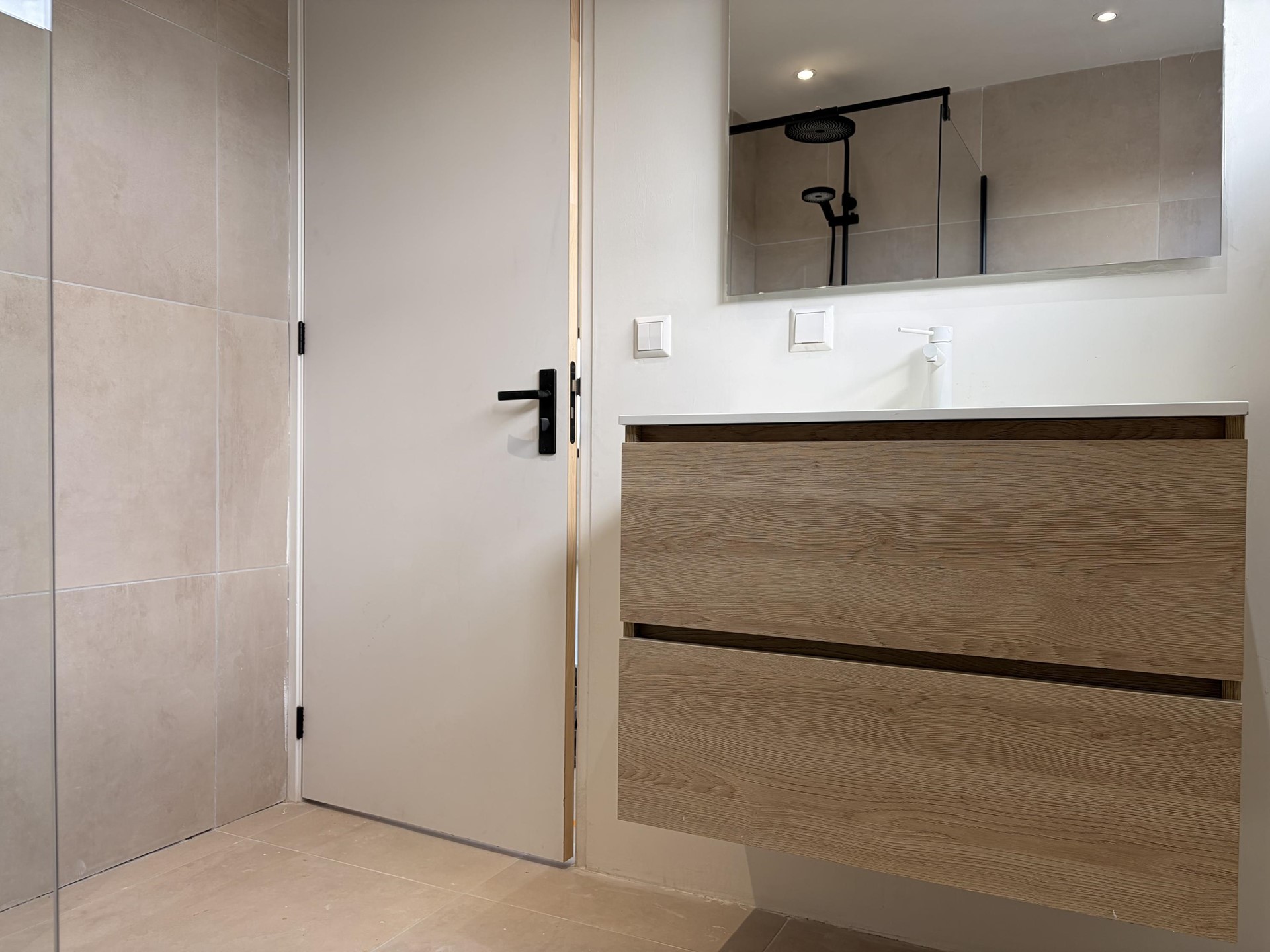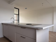 De moderne keuken is voorzien van diverse inbouwapparatuur te weten: vaatwasser, koel-/vriescombinatie, inductiekookplaat met geïntegreerde afzuiging, oven en een kookeiland. De gehele woning is afgewerkt met een nette pvc-vloer en strak gestucte wanden.
