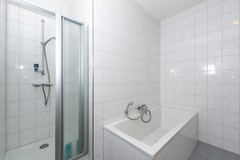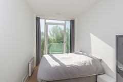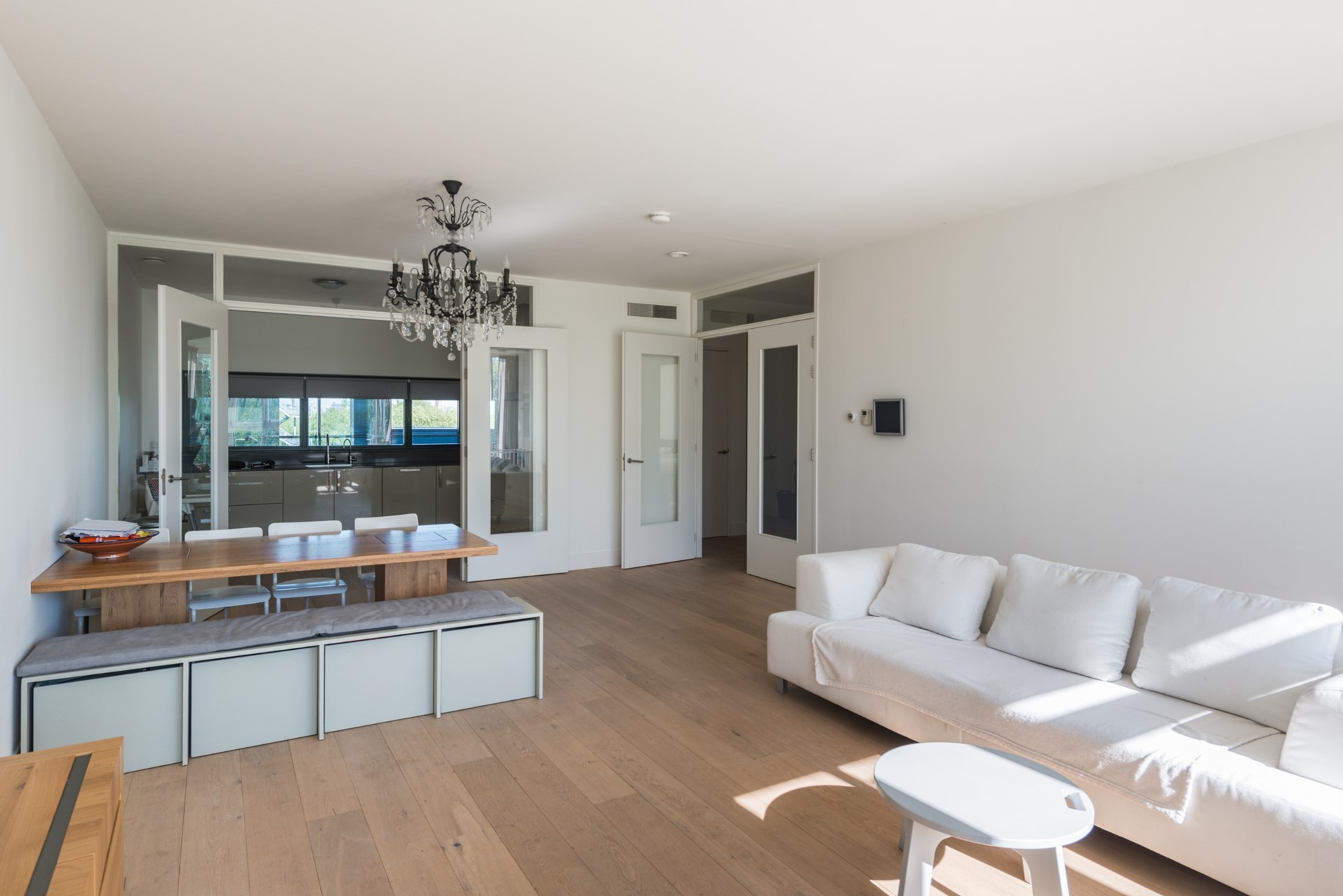 Middels openslaande deuren toegang tot de ruime en lichte woonkamer voorzien van net afgewerkte wanden, hoge plinten en een mooie houten vloer. Vanuit de woonkamer heeft u mooi uitzicht over groenvoorzieningen en de kromme rijn. De moderne keuken is middels openslaande deuren af te sluiten en is voorzien van diverse inbouwapparatuur waaronder een 4 pits elektrisch kookplaat, afzuigkap, koelkast met vriesvak, vaatwasser, en een combimagnetron.