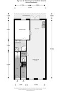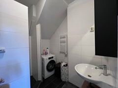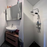 toilet en opbergkast, slaapkamer ca. 3.00 x 3.00 Badkamer voorzien van douche, toilet, wasmachine. Openslaande deuren naar de tuin.