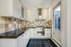 De aparte keuken bevindt zich aan de achterzijde van de woning en is praktisch ingedeeld met diverse inbouwapparatuur.