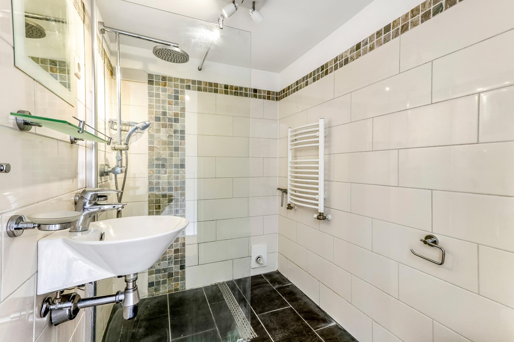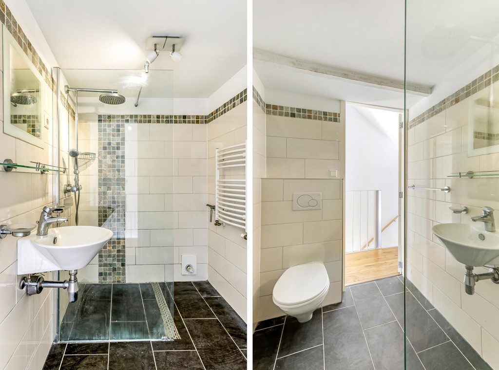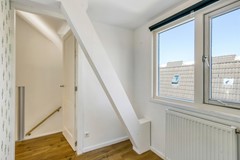 Op de eerste verdieping bevinden zich twee goed bemeten slaapkamers. De slaapkamer aan de achterzijde biedt toegang tot het balkon. De tweede slaapkamer is gelegen aan de voorzijde en is eveneens van goed formaat. De badkamer is voorzien van een douche, wastafel en toilet.