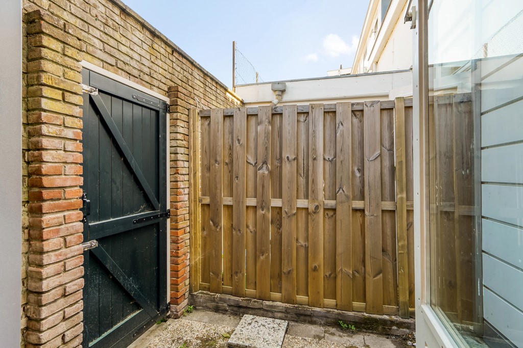 Bij binnenkomst op de begane grond bereikt u via de hal het separate toilet, de trapopgang naar de eerste verdieping en de woonkamer. De woonkamer strekt zich uit over vrijwel de volledige diepte van de woning en beschikt over grote raampartijen aan zowel de voor- als achterzijde, wat zorgt voor een prettige lichtinval. Er is voldoende ruimte voor een comfortabele zit- en eethoek.