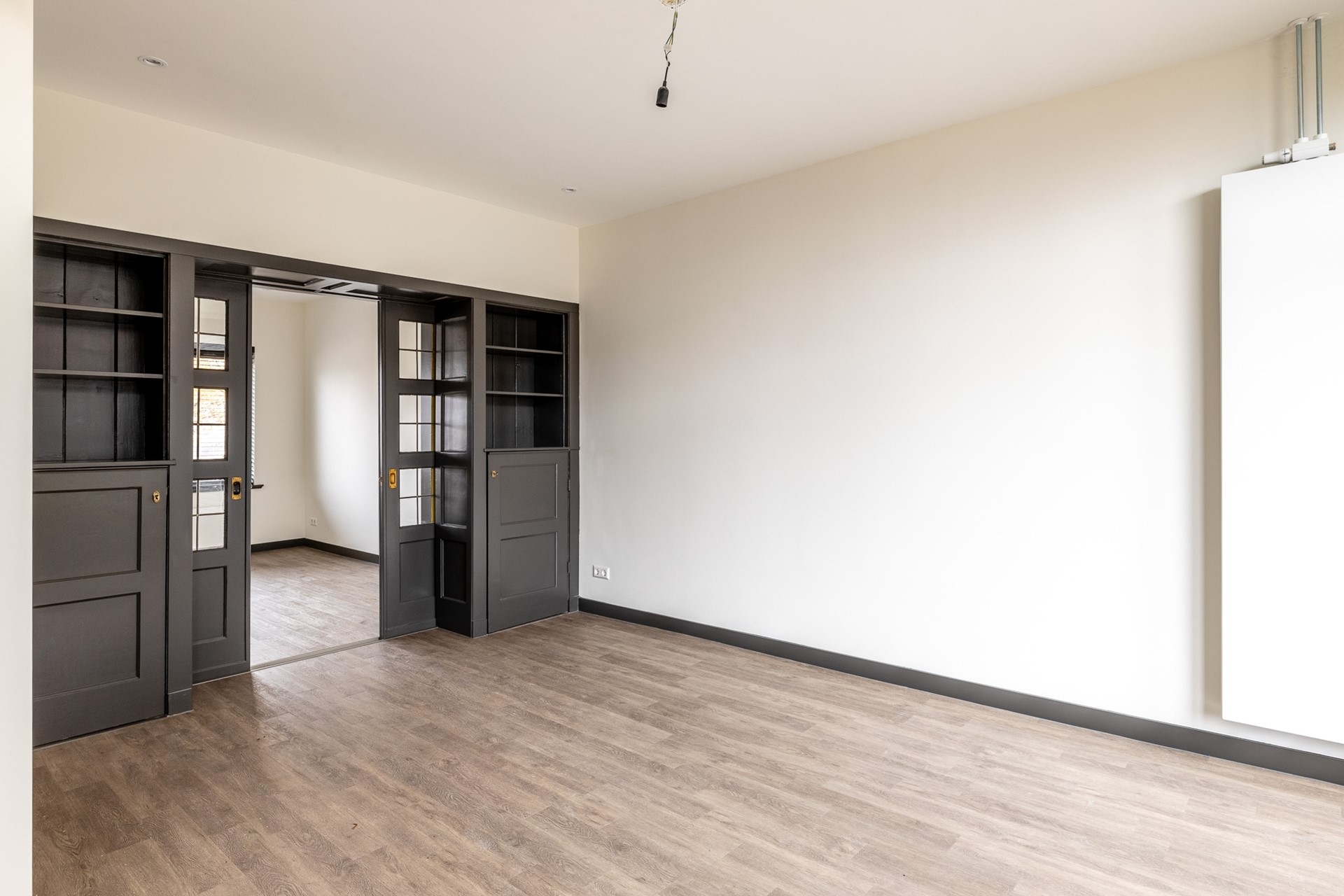 Wanden en plafonds zijn strak gestukt en afgewerkt met oog voor detail, wat zorgt voor een luxe en lichte uitstraling.