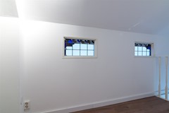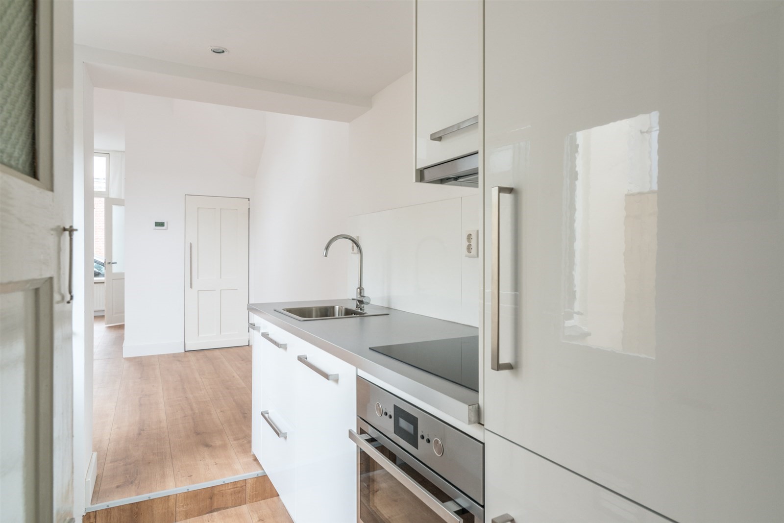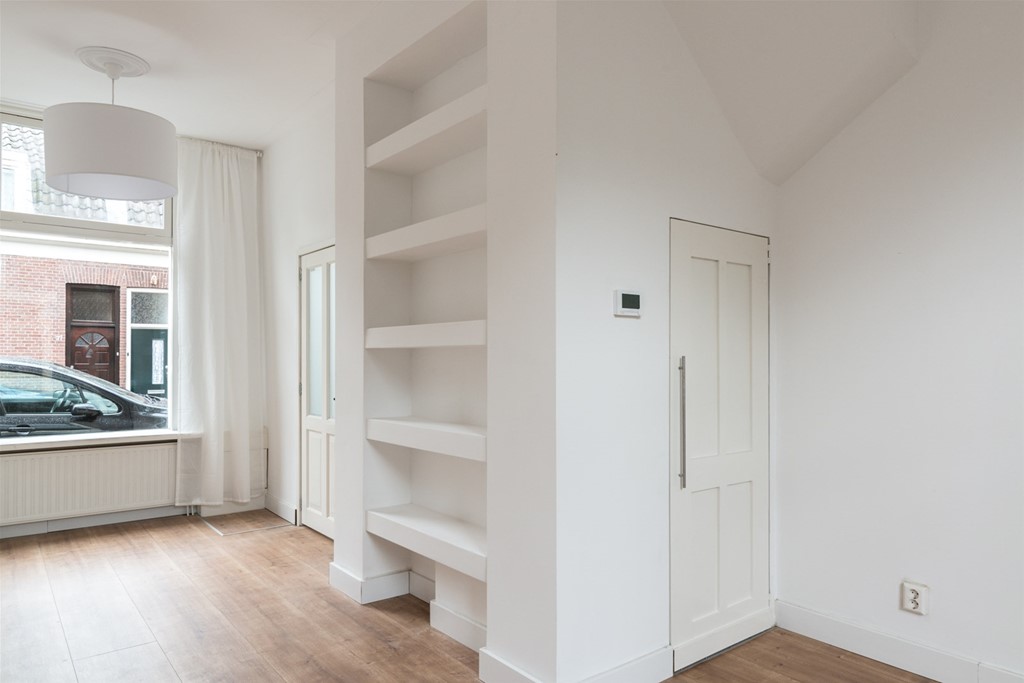Begane grond, entree/hal met trapopgang. Ruime en lichte woonkamer met strak gestuukte wanden en hoge plafonds. De moderne open keuken bevindt zich aan de achterzijde van de woning en is voorzien van diverse inbouwapparatuur. In de woonkamer is een praktische, diepe, trapkast. Vanuit de keuken heeft u toegang tot het toilet en is er een deur naar de achtertuin.