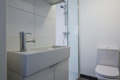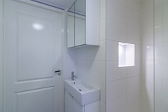 Vanaf de overloop zijn de twee slaapkamers bereikbaar. op de hal bevindt zich een wasruimte en heeft u toegang tot de moderne badkamer met douche, tweede toilet en een wastafel.