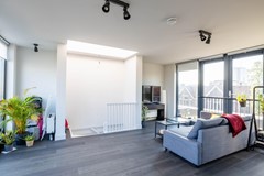 De bovenwoning beschikt over een praktische en lichte indeling. De ruime woonkamer heeft grote ramen die zorgen voor veel natuurlijk licht en een prettig gevoel van ruimte. Aangrenzend bevindt zich de nette keuken, voorzien van de benodigde apparatuur. De woning beschikt over twee slaapkamers, waarvan één uitstekend geschikt is als master bedroom en de tweede ideaal kan worden gebruikt als werk- of logeerkamer. De badkamer is netjes afgewerkt en voorzien van een douche, wastafel en toilet. Daarnaast beschikt de woning over een fijn balkon, een heerlijke plek om buiten te zitten of te genieten van de zon.