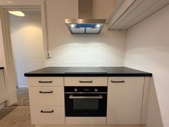 Dan loopt u door naar een hal met originele granito vloer. De gang biedt toegang tot het toilet en de keuken. De keuken is onlangs vernieuwd en is voorzien van een inductiekookplaat, afzuiger, combimagnetron, vaatwasser en koelkast. In de keuken is ook de opstelling voor een wasmachine en -droger.