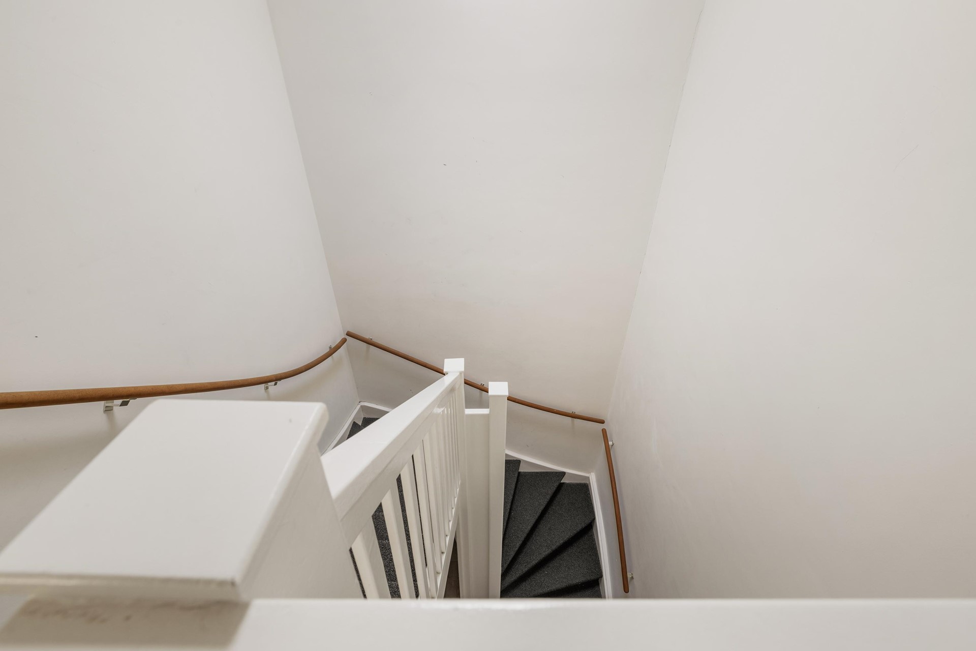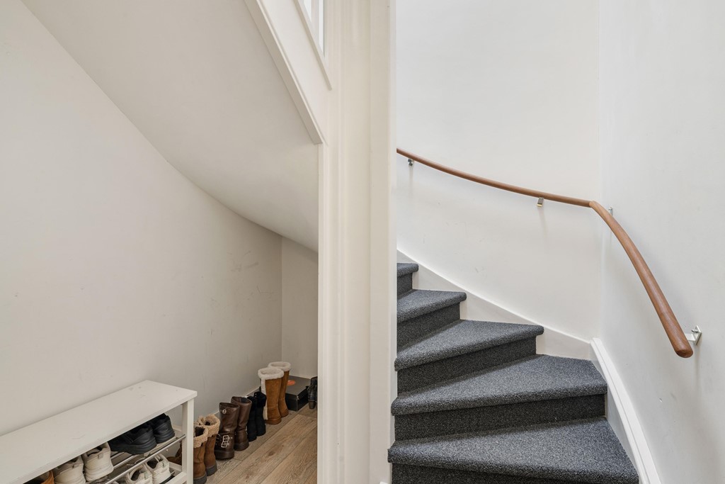 Afgesloten gemeenschappelijke entree met toegang tot het trappenhuis, naast het gebouw bevindt zich een privé stenen berging en de gezamenlijke afgesloten fietsenstalling.