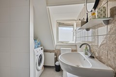 Hier bevinden zich drie ruime slaapkamers en de badkamer. De badkamer is voorzien van een douche, wastafel en ligbad. Ook de aansluiting voor de wasmachine bevindt zich op deze verdieping. Op de overloop is de cv-ketel geplaatst.