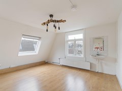 Er bevinden zich twee kamers op deze verdieping. Beide hebben dienst gedaan als slaapkamer, maar de grote slaapkamer zou ook omgetoverd kunnen worden tot woonkamer. Aan de achterzijde bevindt de tweede slaapkamer met een inbouwkast en een toilet.