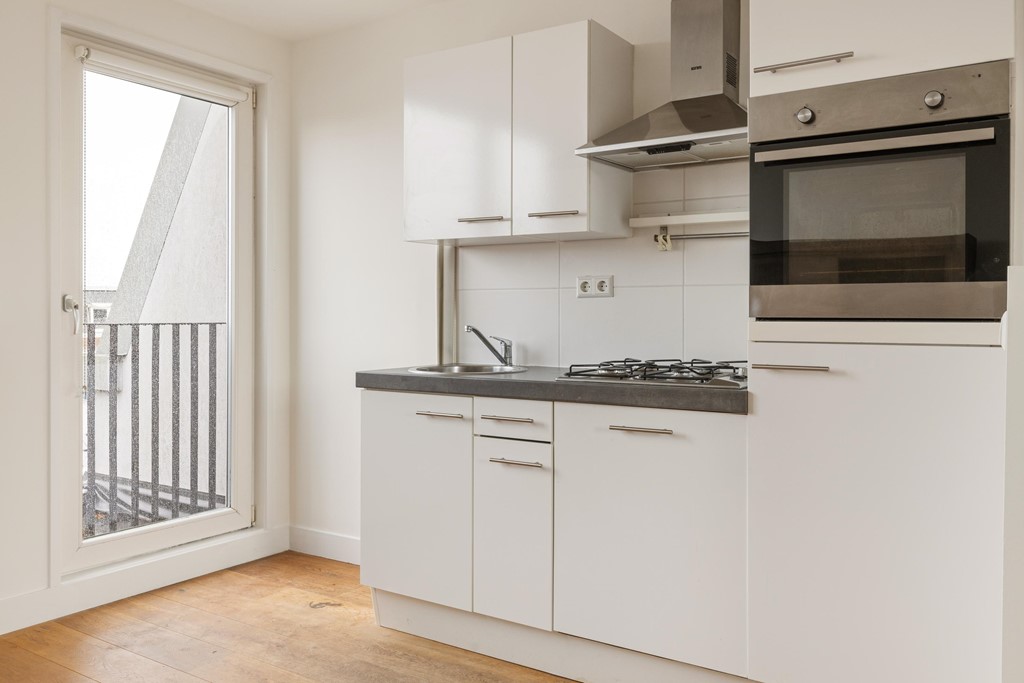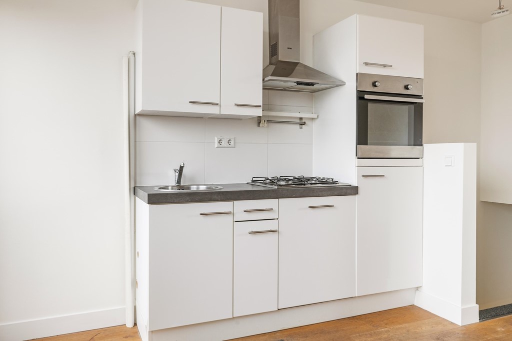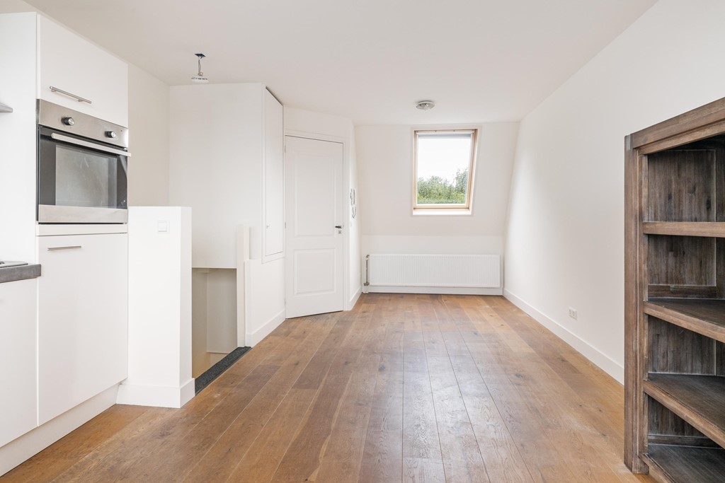 De studio is verrassend licht dankzij de vele ramen en het Franse balkon. Met een nette houten vloer en kunststof kozijnen heeft de studio een moderne en lichte uitstraling.