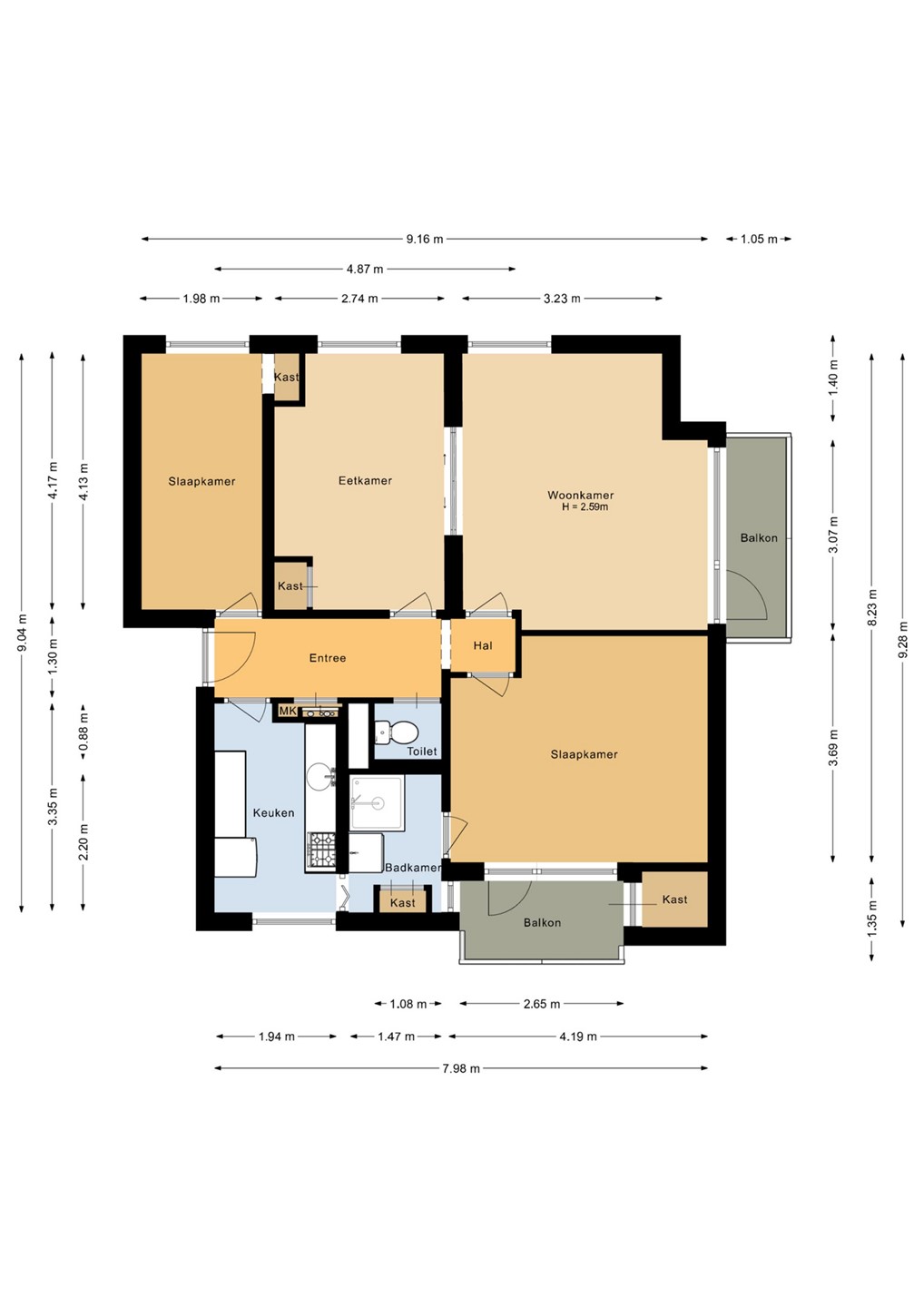 - Gebouwgebonden buitenruimte balkon: ca. 7,1 m²;
