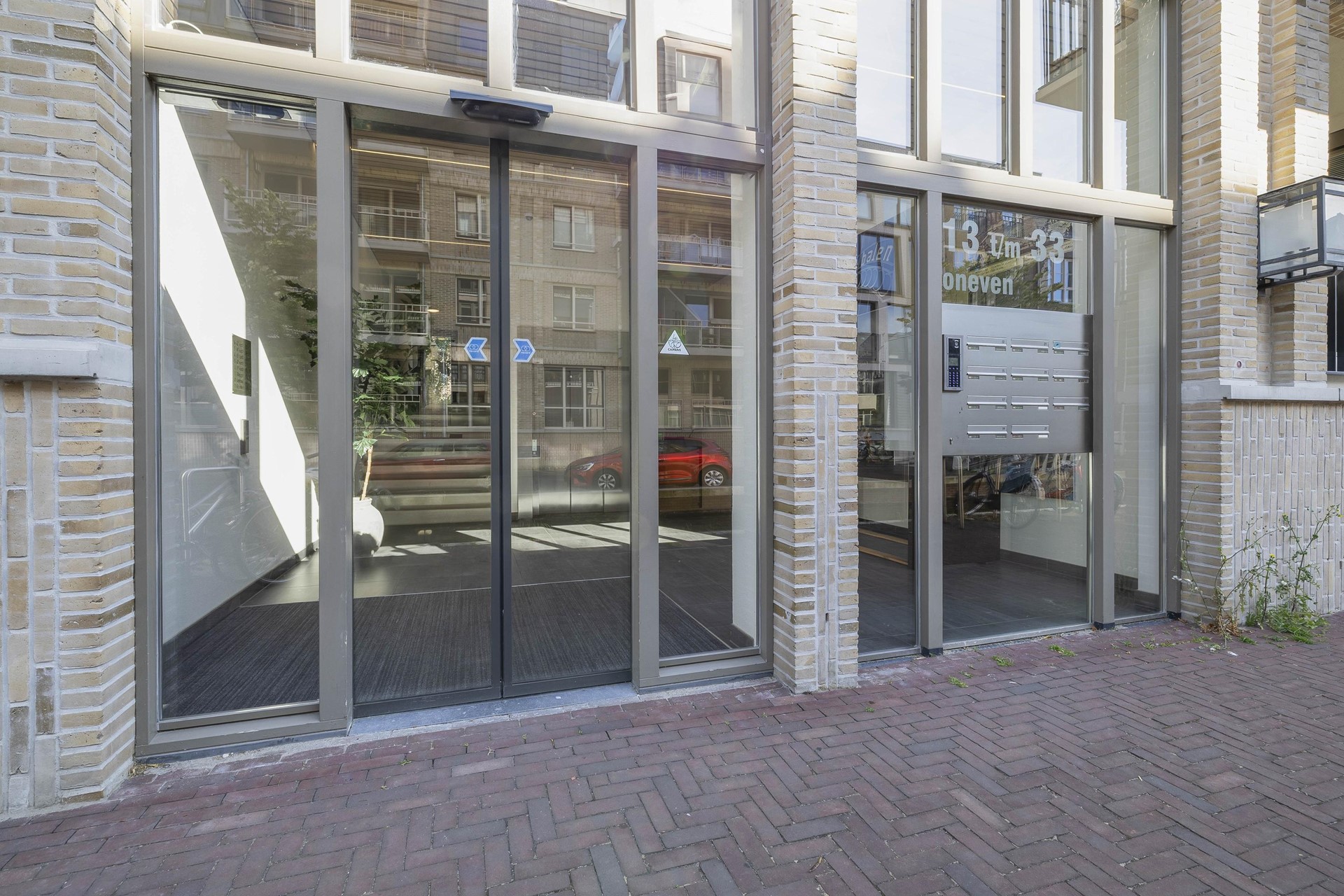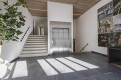 Gemeenschappelijke entree met bellentableau, lift, trappenhuis en toegang naar de berging en het parkeersouterrain.